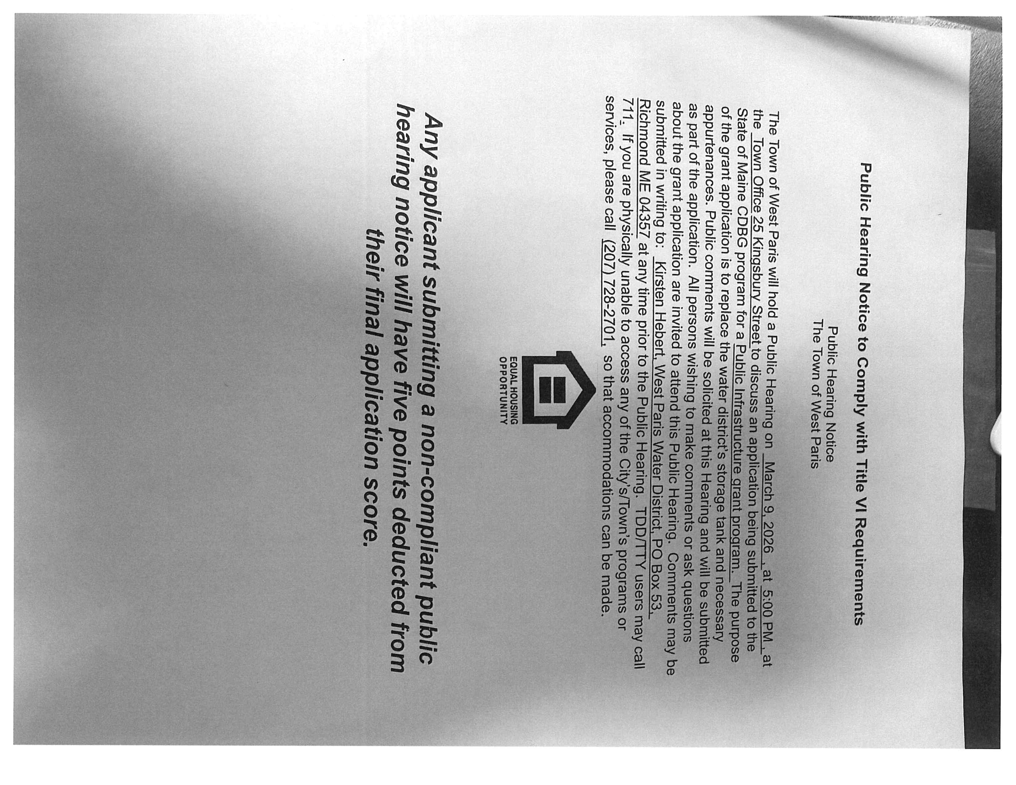 Public Hearing Scheduled - WPWD Public Infrastructure Grant Program